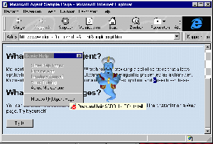 Microsoft heeft zelf enkele van de meest interessante toepassingen voor de ActiveX-technolgie ontwikkeld. Het paradepaardje is de Microsoft Agent. Dit programma biedt een geheel nieuwe manier om met uw computer te werken. In plaats dat elk programma in een apart rechthoekig venster geplaatst is, verschijnt er een geest uit de fles die tegen u spreekt en die naar u luistert. De geest zweeft tussen alle vensters door: