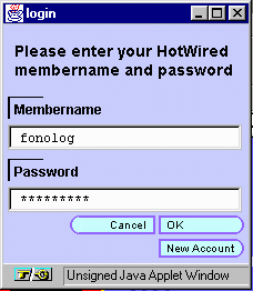 Wanneer u zich al bij het netwerk van het grote Wired-concern heeft aangemeld, vult u hier uw naam en een paswoord in en klikt vervolgens op OK. Heeft u zich nog niet eerder in dit gedeelte van het Web begeven, dan kiest u hier de mogelijkheid New Account om alsnog een (gratis) rekening te openen. Daarna treedt u alsnog binnen. De eigenlijke Java-toepassing wordt nu gestart. U krijgt het volgende scherm te zien:
