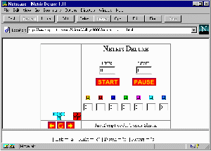 We besluiten dit artikel met wat ontspanning. In alle drie de hier beschreven technieken kunnen ook spelletjes worden gemaakt. In alle drie de systemen gebeurt dat dan ook al in ruime mate. Ook met behulp van JavaScript zijn al behoorlijk wat Web-pagina's opgesierd met een spelletje. Een van de mooiste voorbeelden is het spelletje Netris, dat u kunt vinden op het adres http://www.geocities.com/SilliconValley/9000/netrisdeluxe1-1.html. De naam Netris is een samentrekking van de woorden Net en tetris.