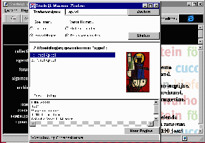 Daar wordt u nog een derde zoekmogelijkheid geboden, namelijk op trefwoord. Door de mogelijkheid Zoeken op de homepage aan te klikken verschijnt deze derde Java-toepassing. Hier kunt u trefwoorden ingegeven. Vervolgens krijgt u een lijst te zien met alle kunstwerken die het desbetreffende trefwoord in hun omschrijving hebben staan. Wanneer u bijvoorbeeld 'stilleven' aanklikt, krijgt u een lijst met alle stillevens: