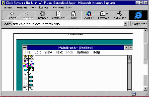 Wanneer u Windows 95 gebruikt, kent u het tekenprogramma Paintbrush waarschijnlijk wel. Het wordt gratis met dit besturingssysteem meegeleverd. U zult er dan ook weinig behoefte aan hebben om dit programma over het Internet te gebruiken. Ook deze techniek lijkt dan ook vooral bedoeld voor zakelijke toepassingen binnen een bedrijfsintern netwerk, een intranet. Alle programma's die binnen een bedrijf gebruikt worden zullen waarschijnlijk binnen nu en enkele jaren alleen via het netwerk draaien. De firma Corel gokt er daarbij op dat WordPerfect via Java zal worden gebruikt. Microsoft en Citrix gaat er daarentegen vanuit dat Paintbrush en (binnen niet al te lange tijd) ook Microsoft Word via ActiveX verspreid zal worden.