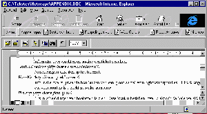 Microsoft heeft overigens zelf een techniek ontwikkeld die enigszins doet denken aan WinFrames. Voor programma's als Word en de spreadsheet Excel heeft het namelijk zogenaamde Viewers gemaakt. Dit zijn programma's die zeer gemakkelijk kunnen samenwerken met bladerprogramma's, of in ieder geval met Microsofts eigen Internet Explorer, en die gratis over het Internet verspreid worden. Wanneer u op uw harde schijf bijvoorbeeld de Word Viewer geïnstalleerd heeft, kunt u in de Internet Explorer documenten bekijken die zijn aangemaakt met behulp van Word:
