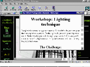 Een zeer inventief en educatief gebruik van dezelfde techniek wordt gebruikt in de Workshop Fotografie. Op deze pagina's (http://home.pi.net/~pgoos/) leert de Nederlandse fotograaf Patrick Goossens u fotograferen. U krijgt op deze site als het ware een camera in handen. In een venster wordt uitgelegd hoe u deze camera dient te richten en te bedienen. In een ander venster kunt u deze tips proberen toe te passen:
