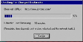 Vervolgens zoekt het programma contact met alle Web-pagina's waarvoor u een boekenlegger heeft aangemaakt en controleert of die pagina's zijn bijgewerkt sinds de laatste tijd dat u ze bezocht. Dit kan enige tijd duren, maar u kunt dit programma natuurlijk op de achtergrond laen werken, terwijl u zelf iets anders doet.