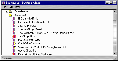 Om dit alles te kunnen doen, kiest u de mogelijkheid Edit Bookmarks of Go to Bookmarks -- afhankelijk van de versie die u gebruikt -- in het menu Bookmarks. U krijgt dan het volgende venster te zien: