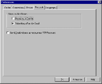 Met die informatie kan de aanbieder soms aardige dingen voor u doen. Zo maken cookies het mogelijk een gebruikersprofiel van u bij te houden, zodat u voortaan elke keer dat u informatie bij de aanbieder opvraagt, precies die informatie krijgt die op u is toegesneden. Aan de andere kant is deze informatie uiteraard enigszins privacy-gevoelig. U kunt er daarom voor kiezen om Netscape u elke keer te laten waarschuwen voordat het een cookie verstuurt.