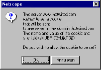 Er is echter nog iets dat JavaScript kan doen voor degene die een Web-pagina publiceert: hij kan zichzelf een pakketje met informatie over u laten sturen, een zogenaamde cookie. Deze cookie kan bijvoorbeeld onder andere uw e-mailadres bevatten, het nummer van de versie van Netscape die u gebruikt, de datum en de tijd waarop u een pagina bij de informatie-aanbieder hebt opgevraagd.