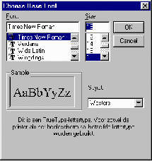 U kunt hier twee soorten lettertypen veranderen: een proportioneel en een niet-proportioneel ('fixed') lettertype. De meeste pagina's gebruiken alleen een proportioneel lettertype en het is dan ook in de regel zinniger om dat te veranderen. U klikt hiervoor op de knop Choose Font. Er verschijnt dan een klein venster waarin u precies kunt aangeven welk lettertype er dient te worden gebruikt: