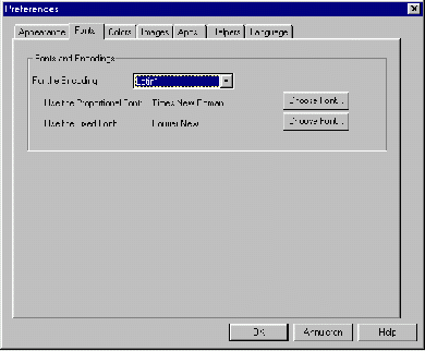 Ook het standaardlettertype dat gebruikt wordt om de informatie op de Web-pagina's te presenteren, kunt u aanpassen. Zo kunt u er bijvoorbeeld voor kiezen om dit lettertype te desgewenst te vergroten om een grotere leesbaarheid te verkrijgen. U kiest dan voor het tabblad Fonts (lettertypen):