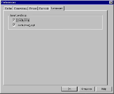 Nu kiest u de deelafdeling Languages. Desgewenst kunt u hier de mogelijkheden om met Java en JavaScript te werken uitzetten, door het vinkje voor respectievelijk Enable Java en Enable JavaScript te verwijderen.