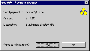 Het programma bevat een aantal door de bank van een digitale handtekening voorziene elektronische duiten. Wanneer u op een site komt waar ecash geaccepteerd wordt, en u ziet iets dat u wilt kopen. Vervolgens komt uw digitale portemonnee tevoorschijn die de transactie voor u -- anoniem -- uitvoert.